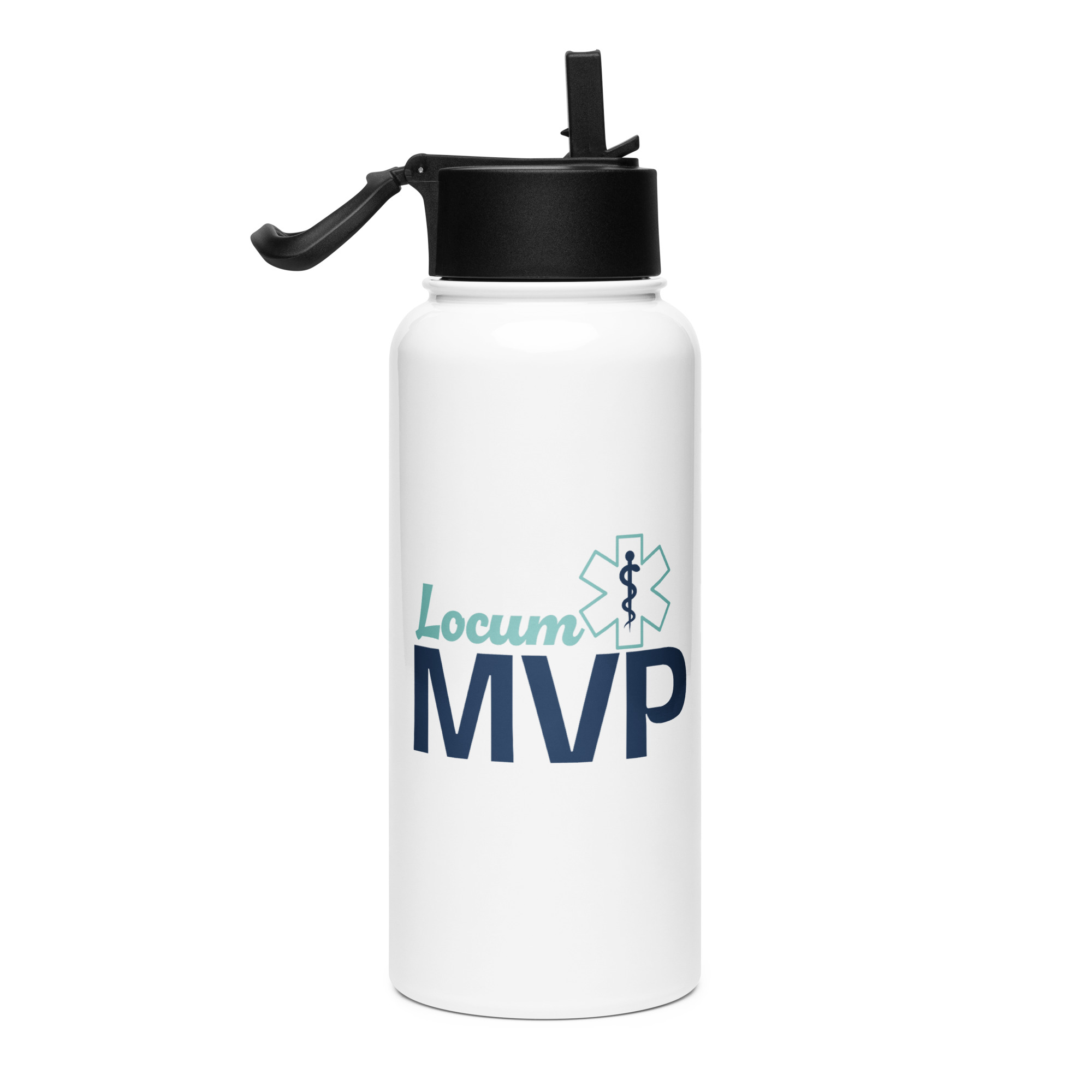 Give the gift of hydration with our 32 oz water bottle, which is ideal for a locum’s busy day. Whether they’re powering through workouts or on long shifts, this bottle keeps drinks cold and their hands free. Featuring a wide-mouth foldable straw for spill-free sips and a rotating handle for easy carrying, this sleek, double-walled stainless steel bottle makes the perfect companion for any professional on the go.